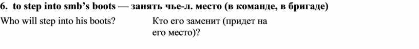 6. to step into smb’s boots — занять чье-л. место (в команде, в бригаде)