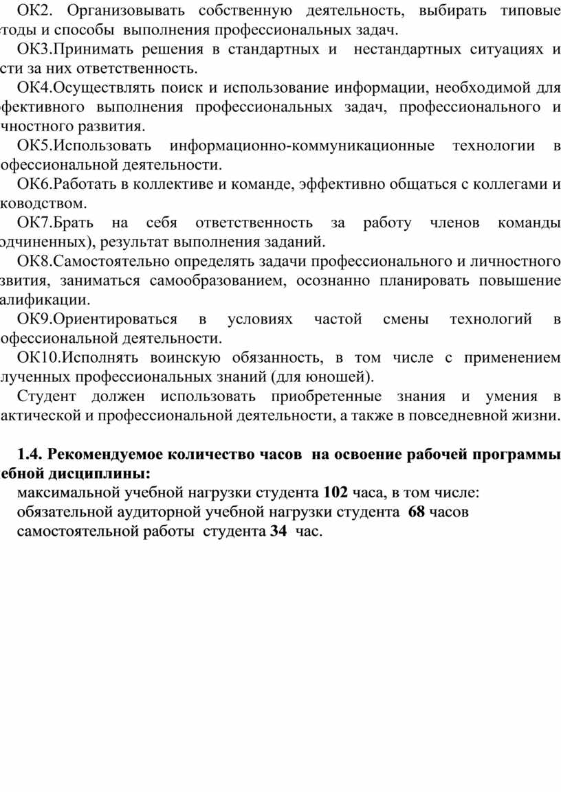 максимальной учебной нагрузки студента 102 часа, в том числе: