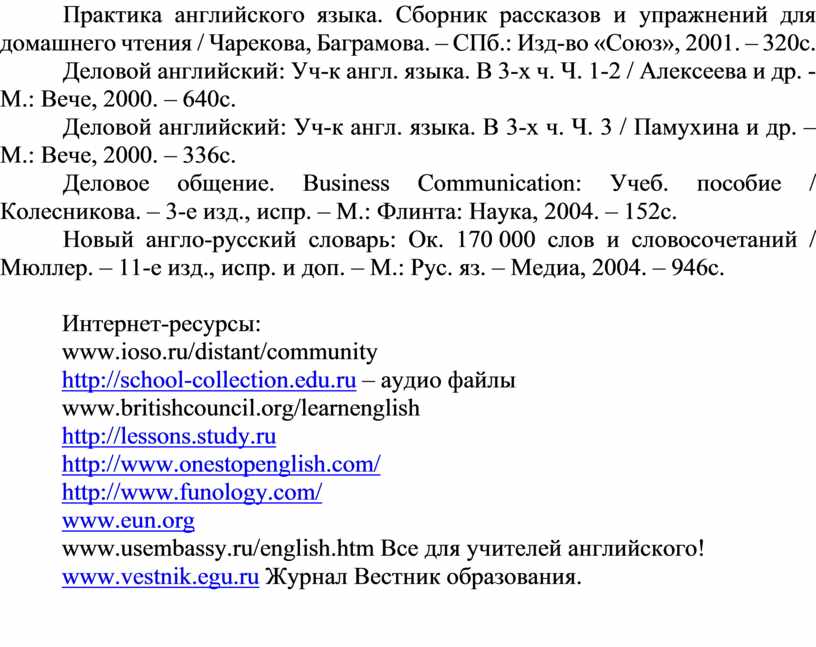 Практика английского языка. Сборник рассказов и упражнений для домашнего чтения / Чарекова, Баграмова. – СПб.: Изд-во «Союз», 2001. – 320с.