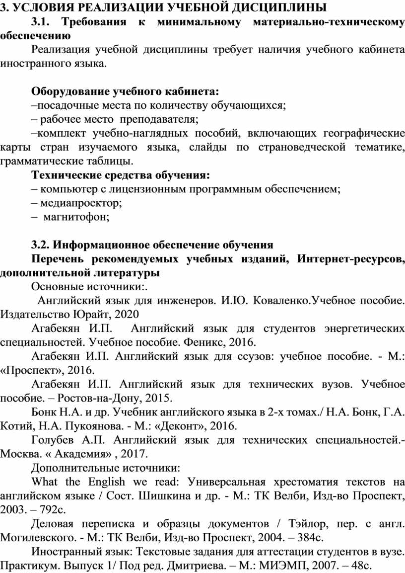 3. УСЛОВИЯ РЕАЛИЗАЦИИ УЧЕБНОЙ ДИСЦИПЛИНЫ