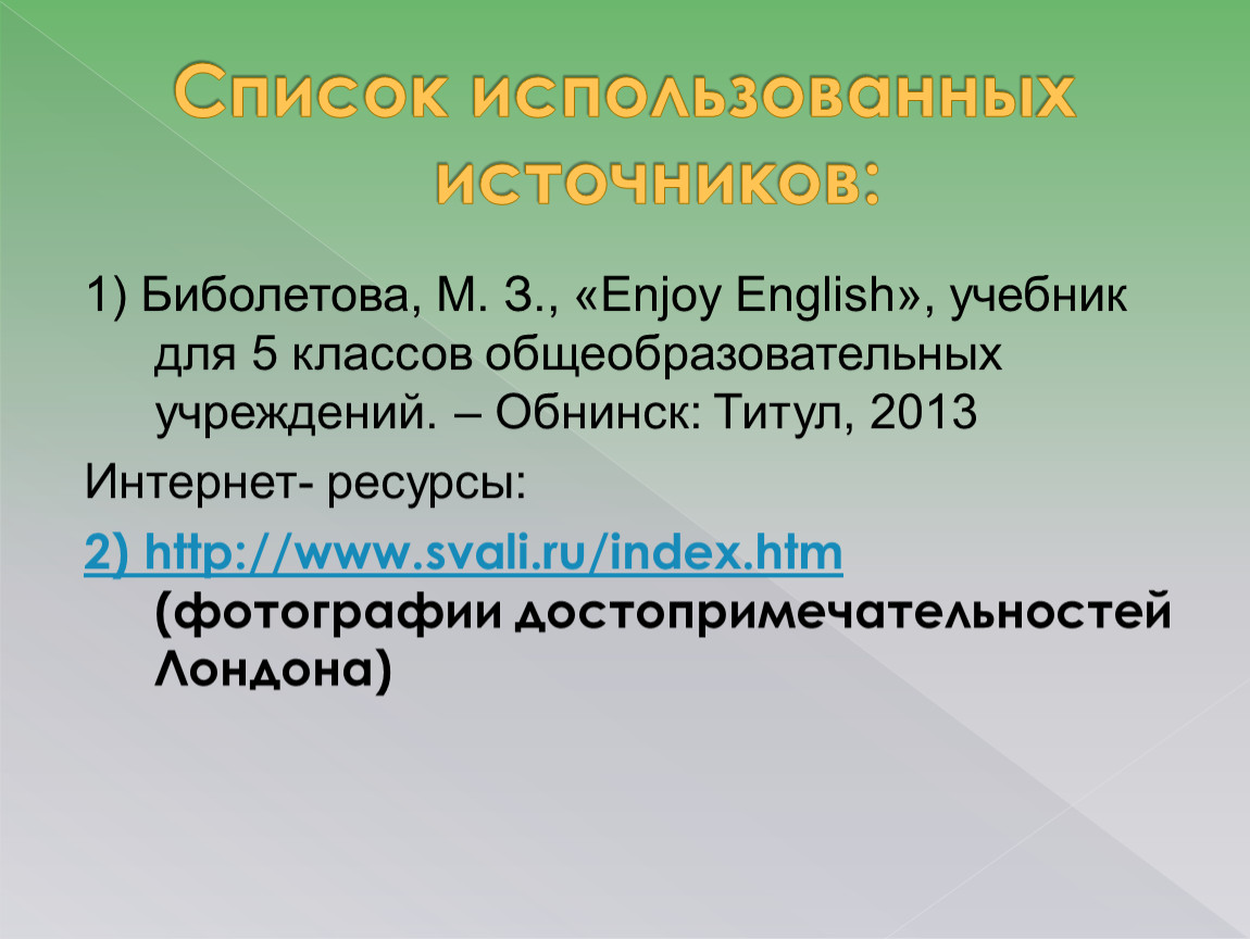 Презентация к уроку английского языка для 5 класса