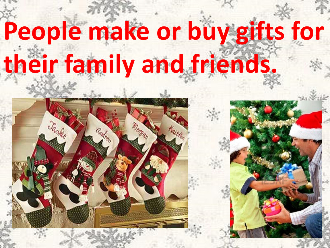 People make or buy gifts for their family and friends.