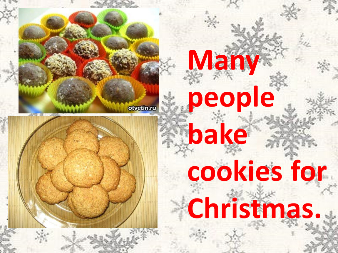 Many people bake cookies for Christmas.
