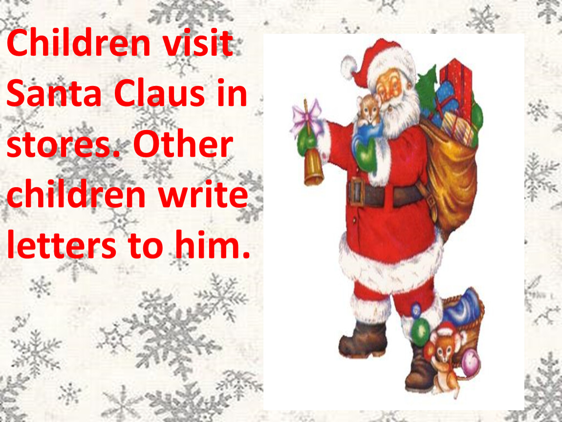 Children visit Santa Claus in stores. Other children write letters to him.