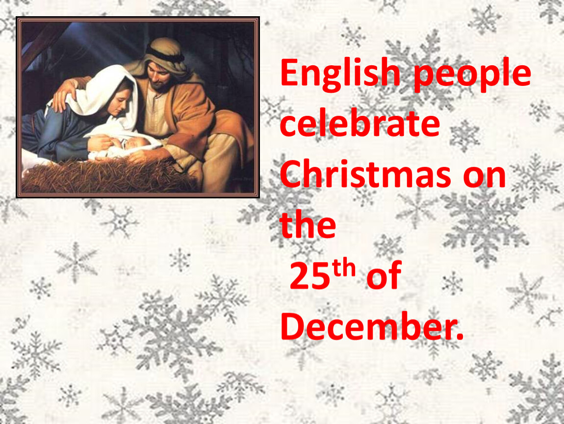 English people celebrate Christmas on the 25th of December.