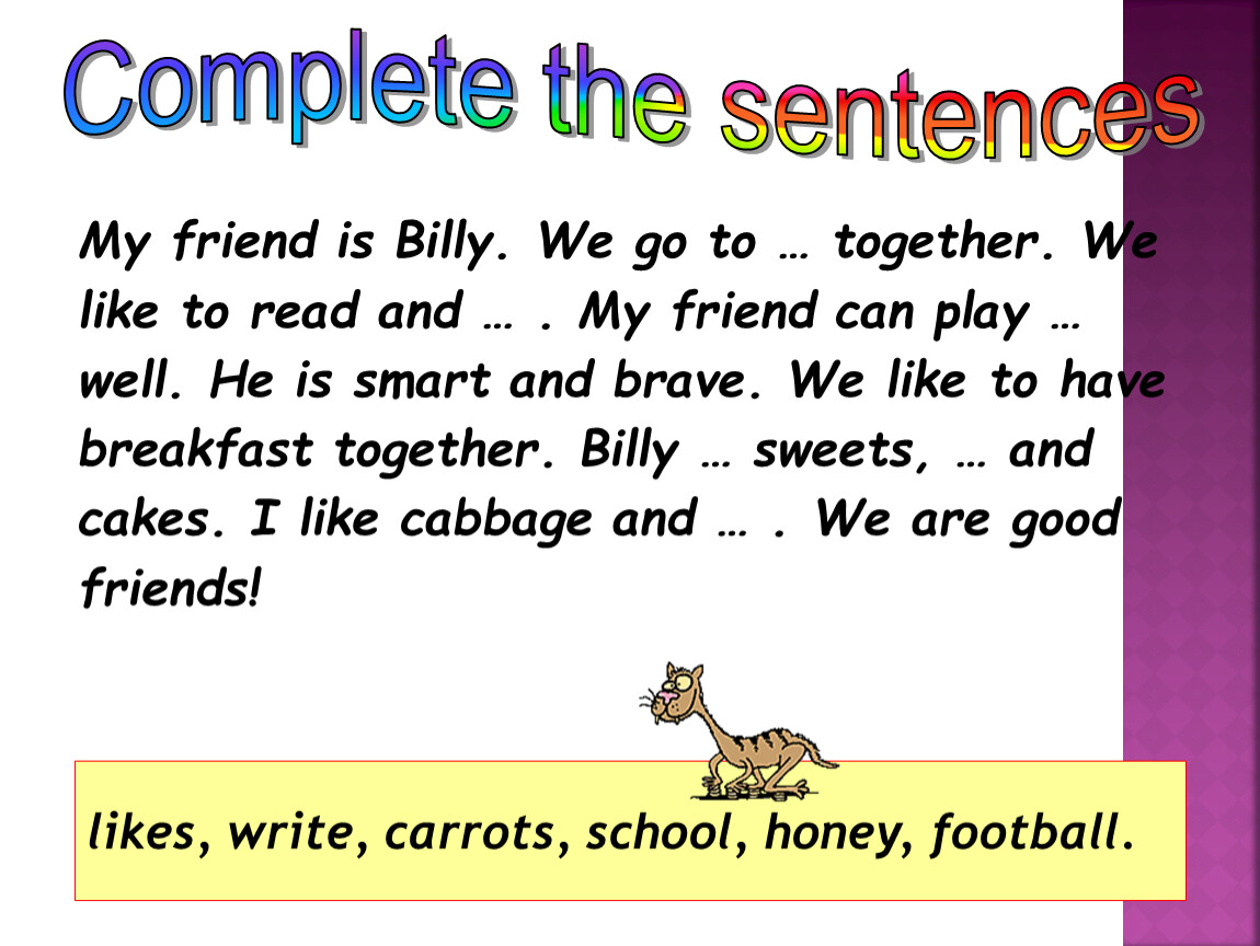 likes, write, carrots, school, honey, football.