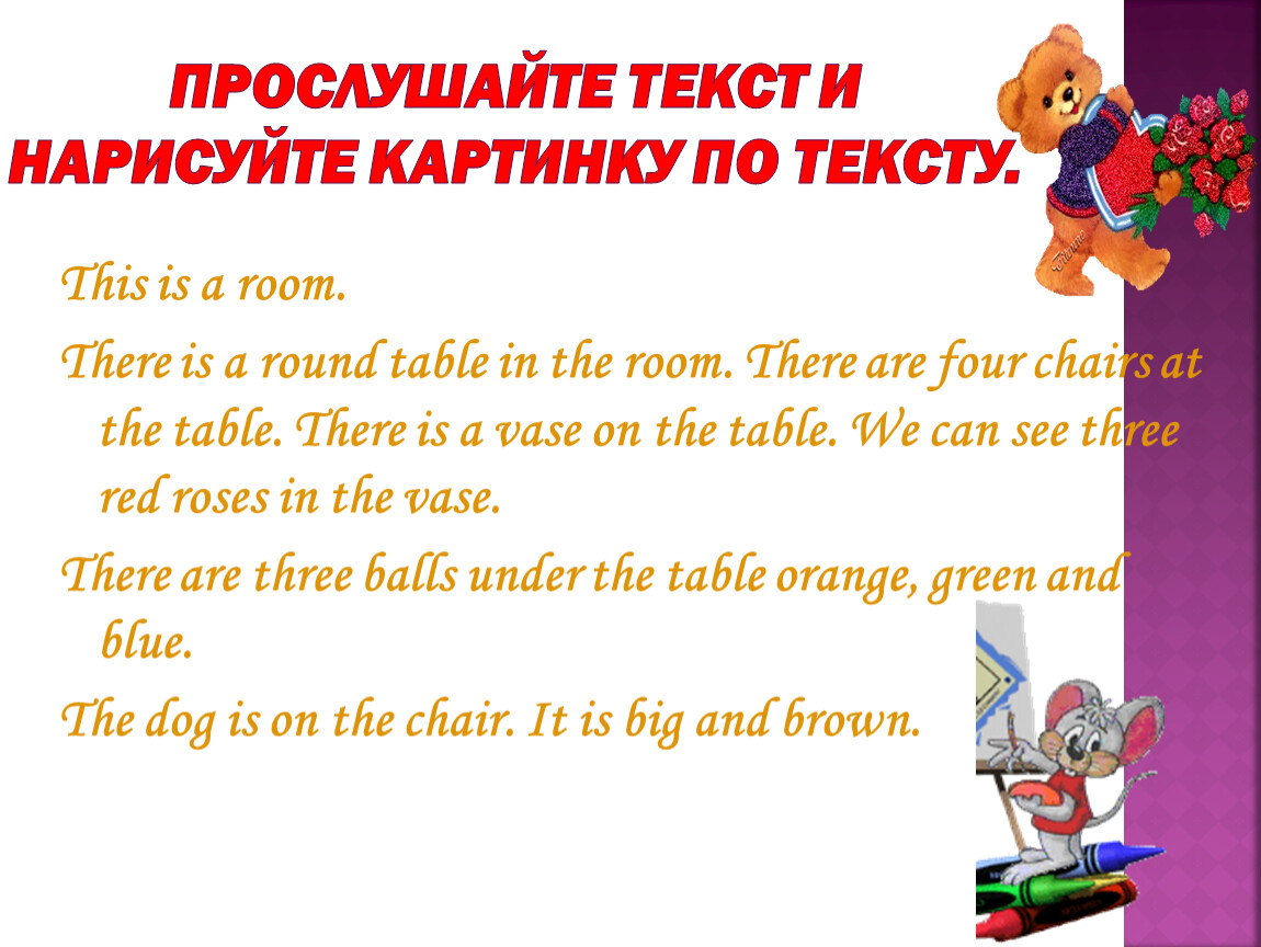 Прослушайте текст и нарисуйте картинку по тексту.