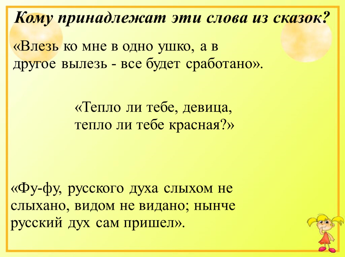 Кому принадлежат эти слова из сказок?