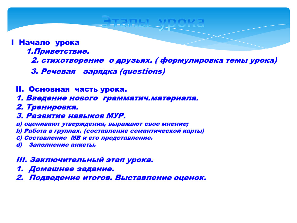 Этапы урока
