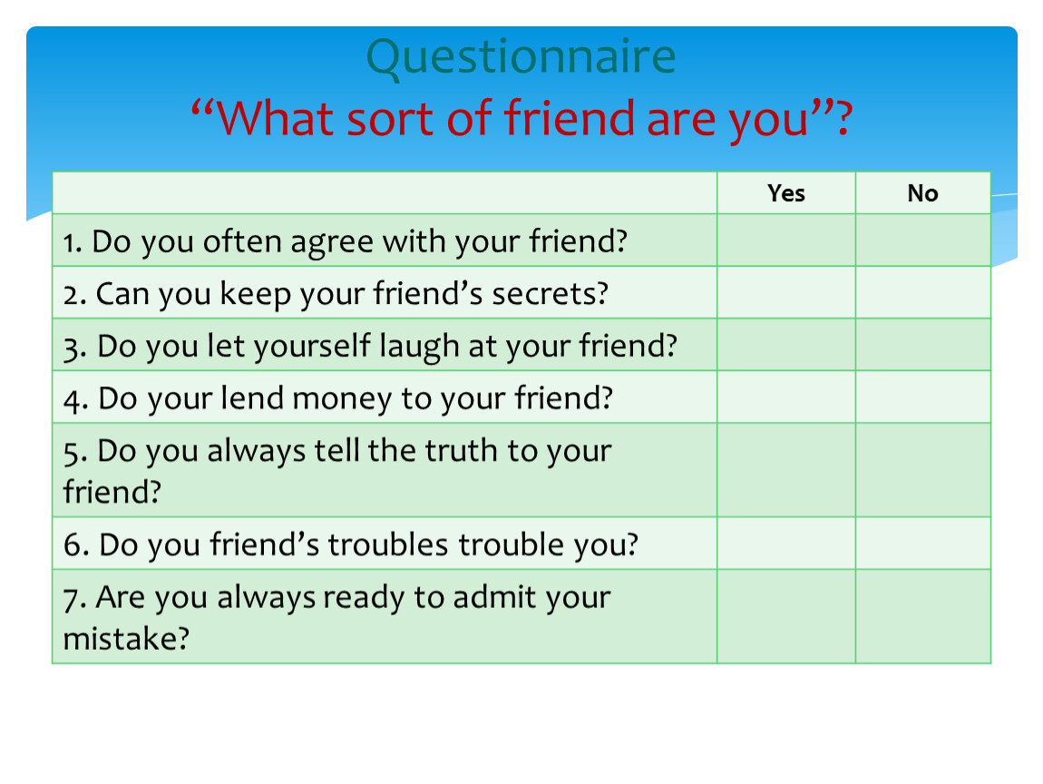 Questionnaire “What sort of friend are you”?