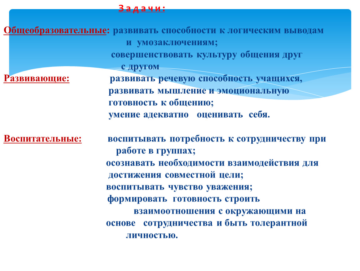 Общеобразовательные: развивать способности к логическим выводам