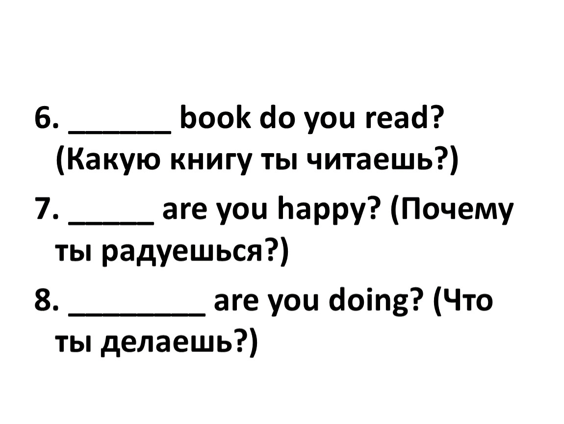 6. ______ book do you read? (Какую книгу ты читаешь?)