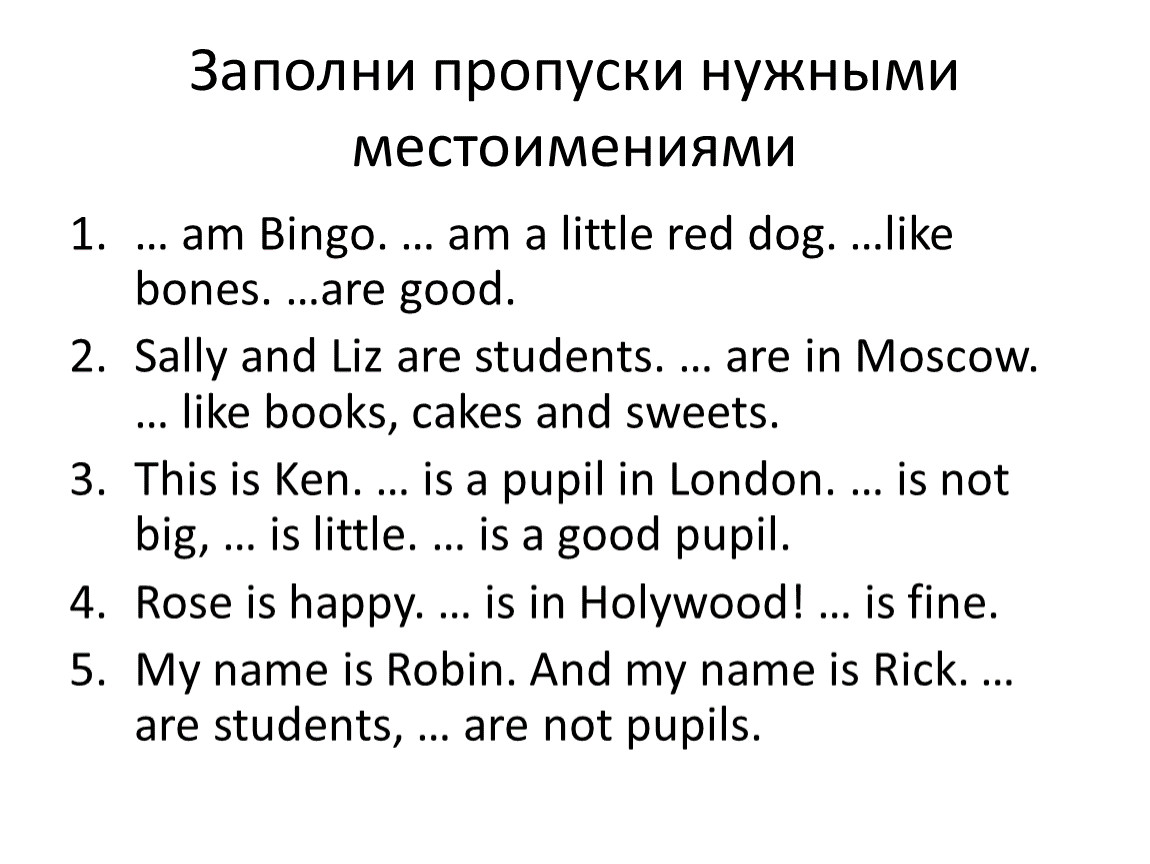Sally and Liz are students. … are in Moscow. … like books, cakes and sweets.