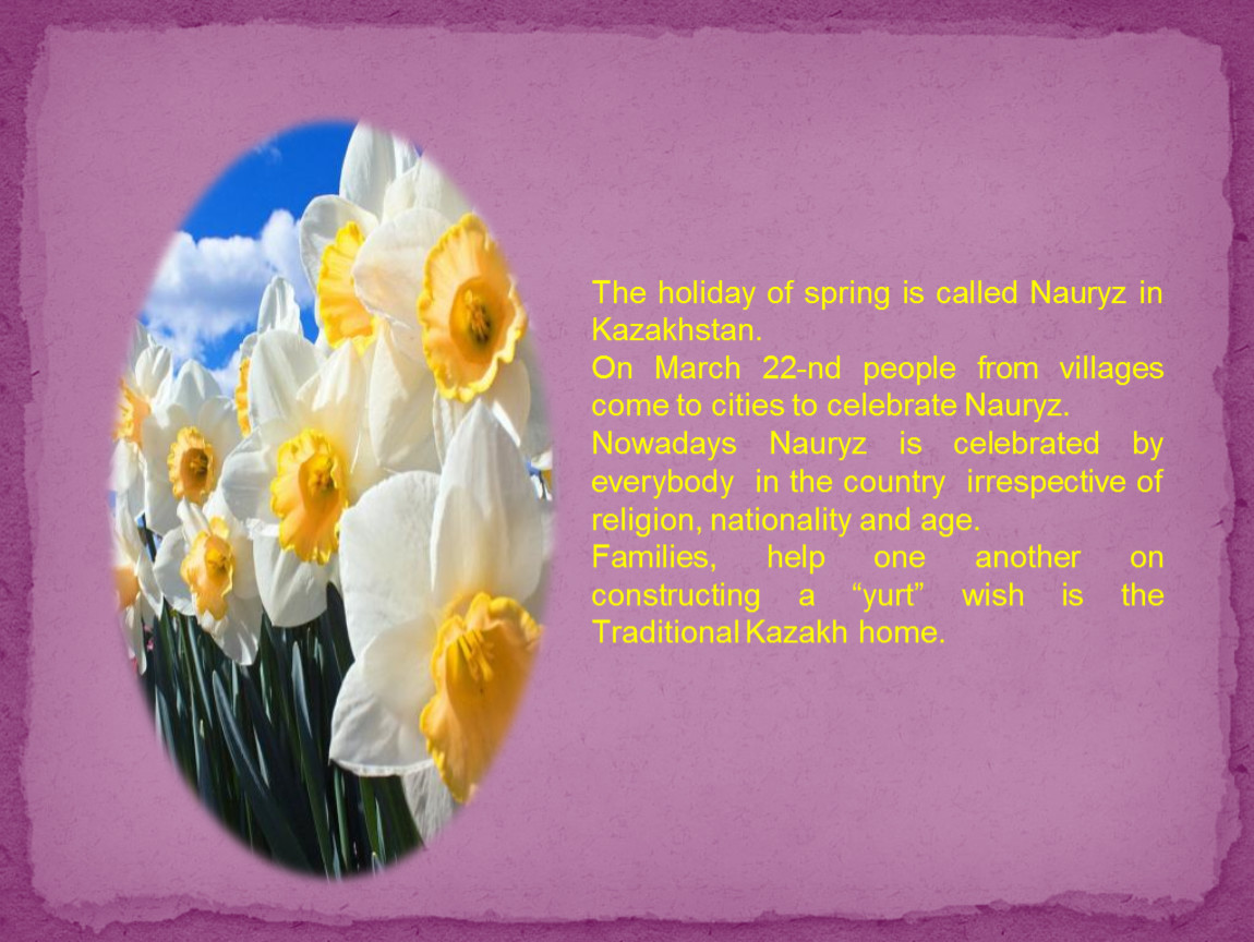 Nowadays Nauryz is celebrated by everybody in the country irrespective of religion, nationality and age.