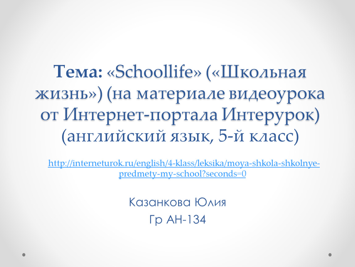 Тема: «Schoollife» («Школьная жизнь») (на материале видеоурока от Интернет-портала Интерурок)(английский язык, 5-й класс)