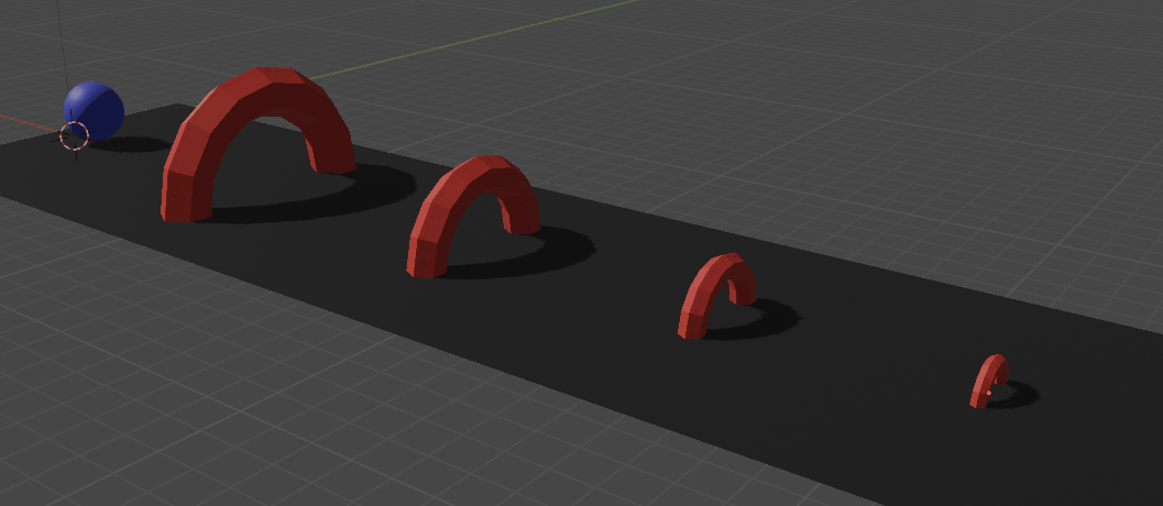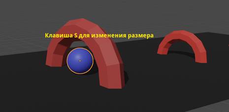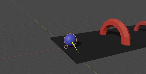 8. Уменьшим сферу при помощи горячей клавиши S до приемлемых размеров для прохождения чекпоинта. Так же отрегулируем положение сферы, чтобы она находилась на плоскости.