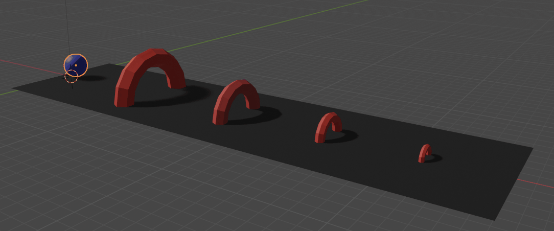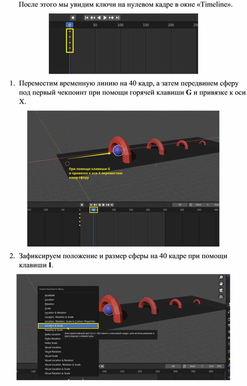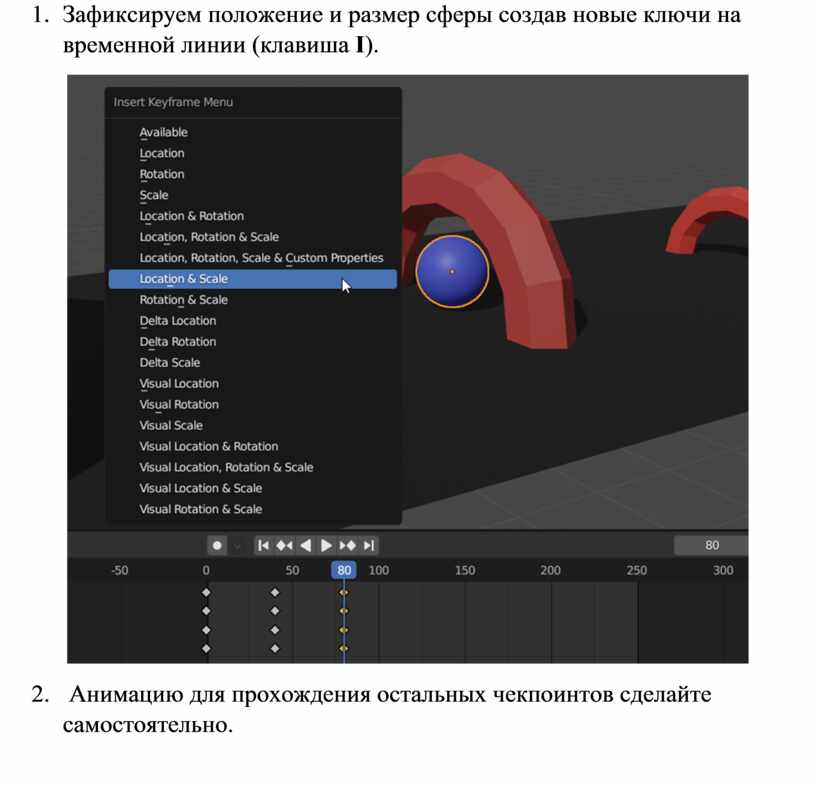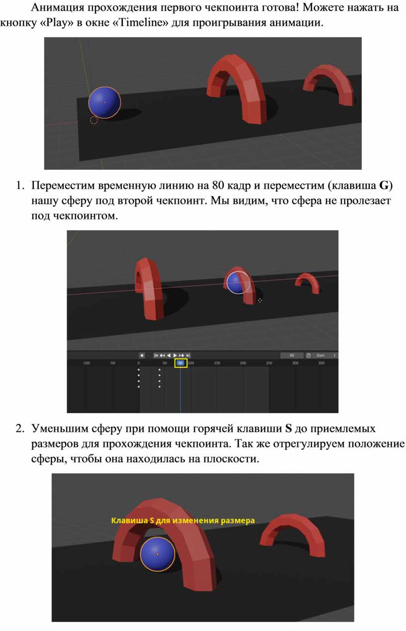 Ваша задача – создать анимацию передвижения и масштаба сферы, чтобы она свободна прошла сквозь чекпоинты разного размера.