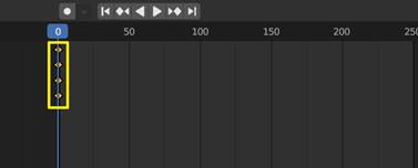 После этого мы увидим ключи на нулевом кадре в окне «Timeline».