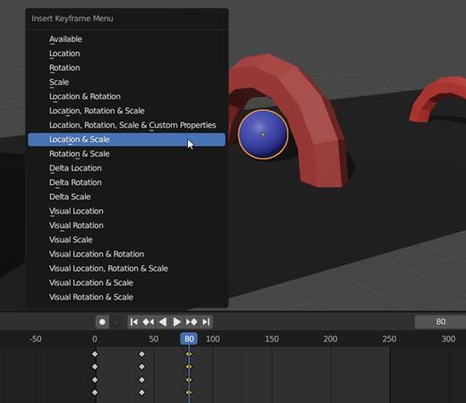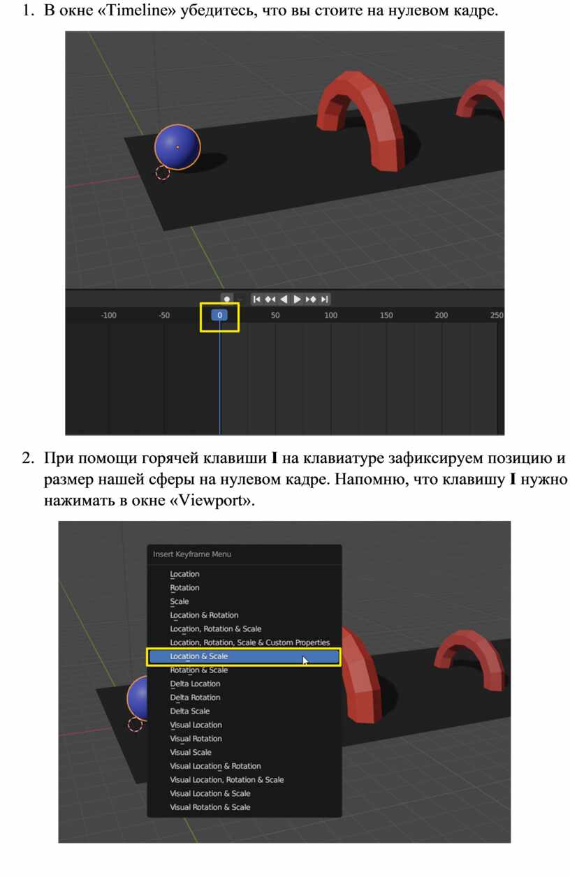 9. Зафиксируем положение и размер сферы создав новые ключи на временной линии (клавиша I).