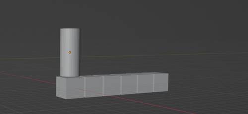 Создаем цилиндр и ставим его на первый куб.