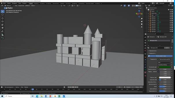 Дальше нам нужны прямоугольники, мы их создаем при помощи куба (просто поменяйте его размер), после ставим их на наши кубы которые уже существуют.