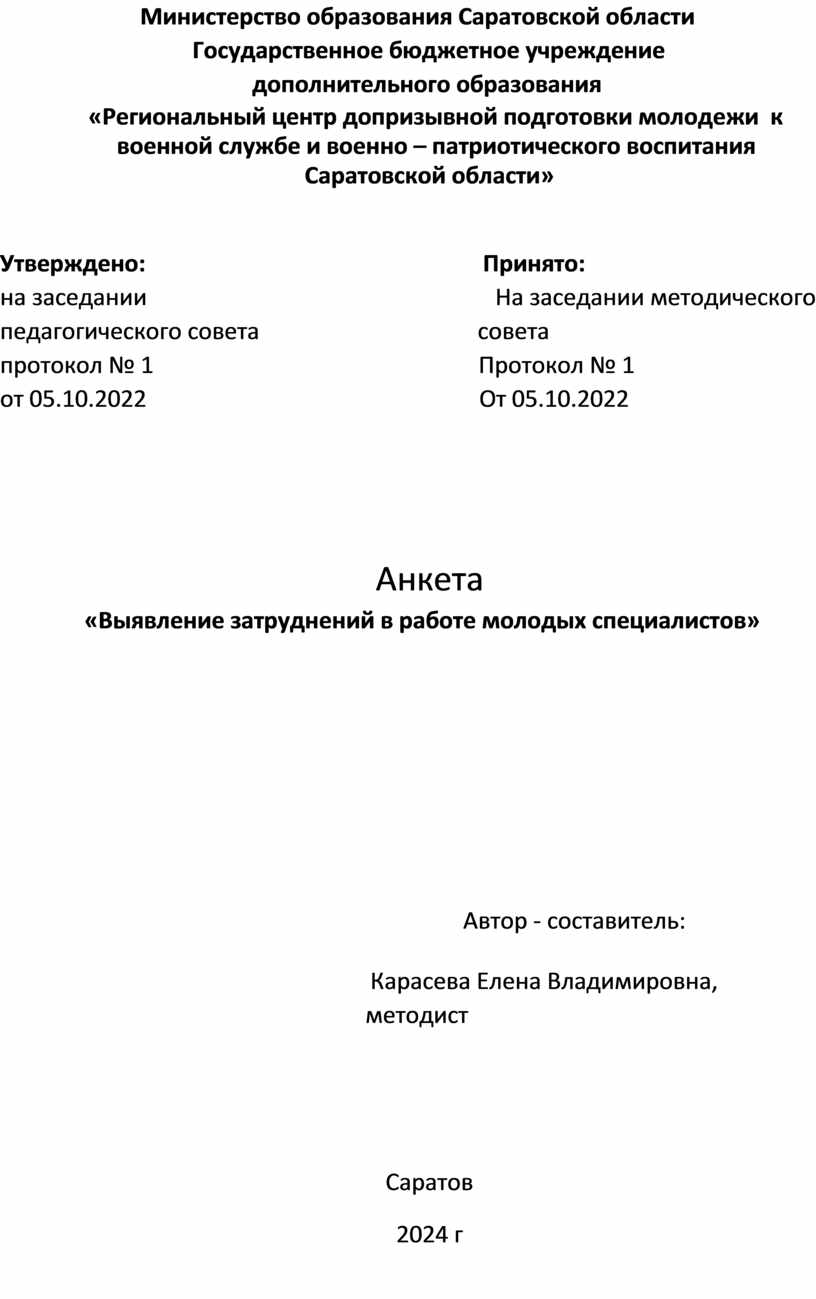 «Выявление затруднений в работе молодых специалистов»