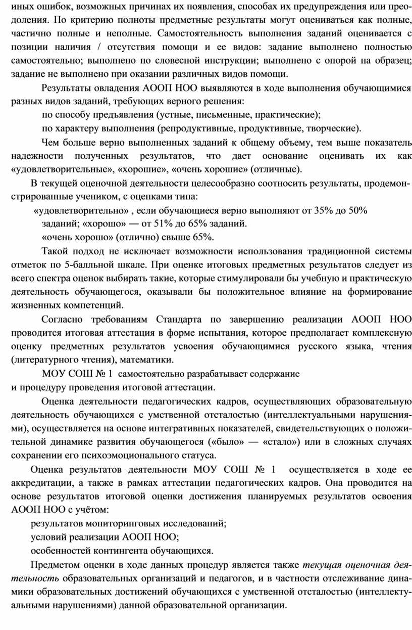 систему оценки достижения планируемых результатов освоения АООП НОО. Содержательный раздел определяет общее содержание образования обучающихся с