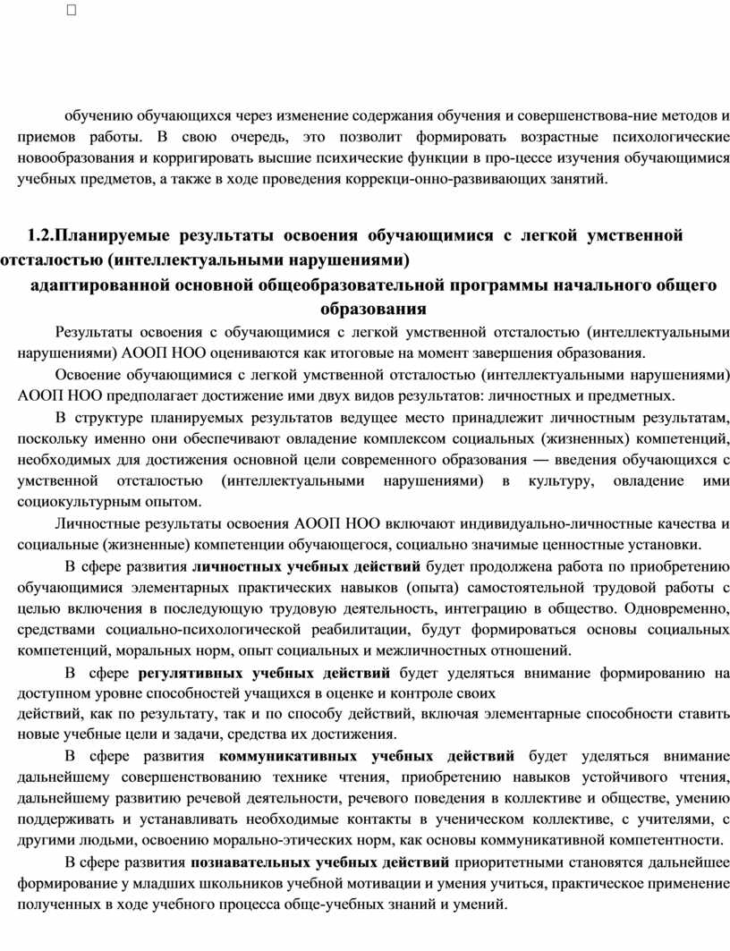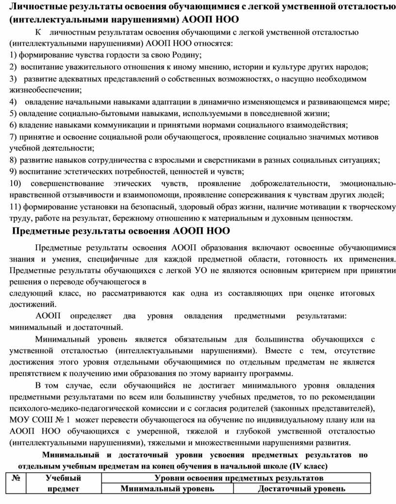 планируемые результаты освоения обучающимися с умственной отсталостью (интеллектуальными нарушениями) АООП НОО;