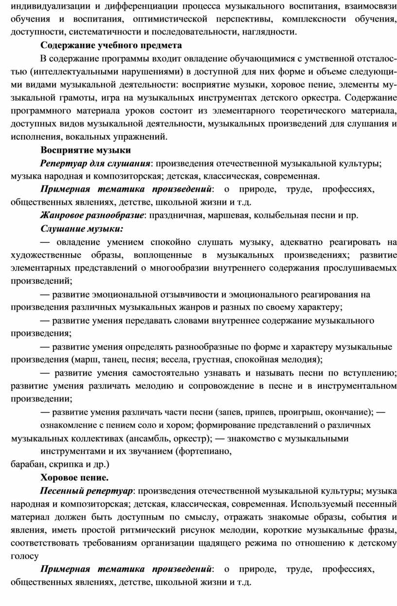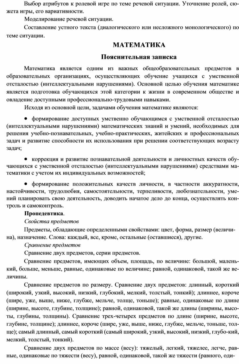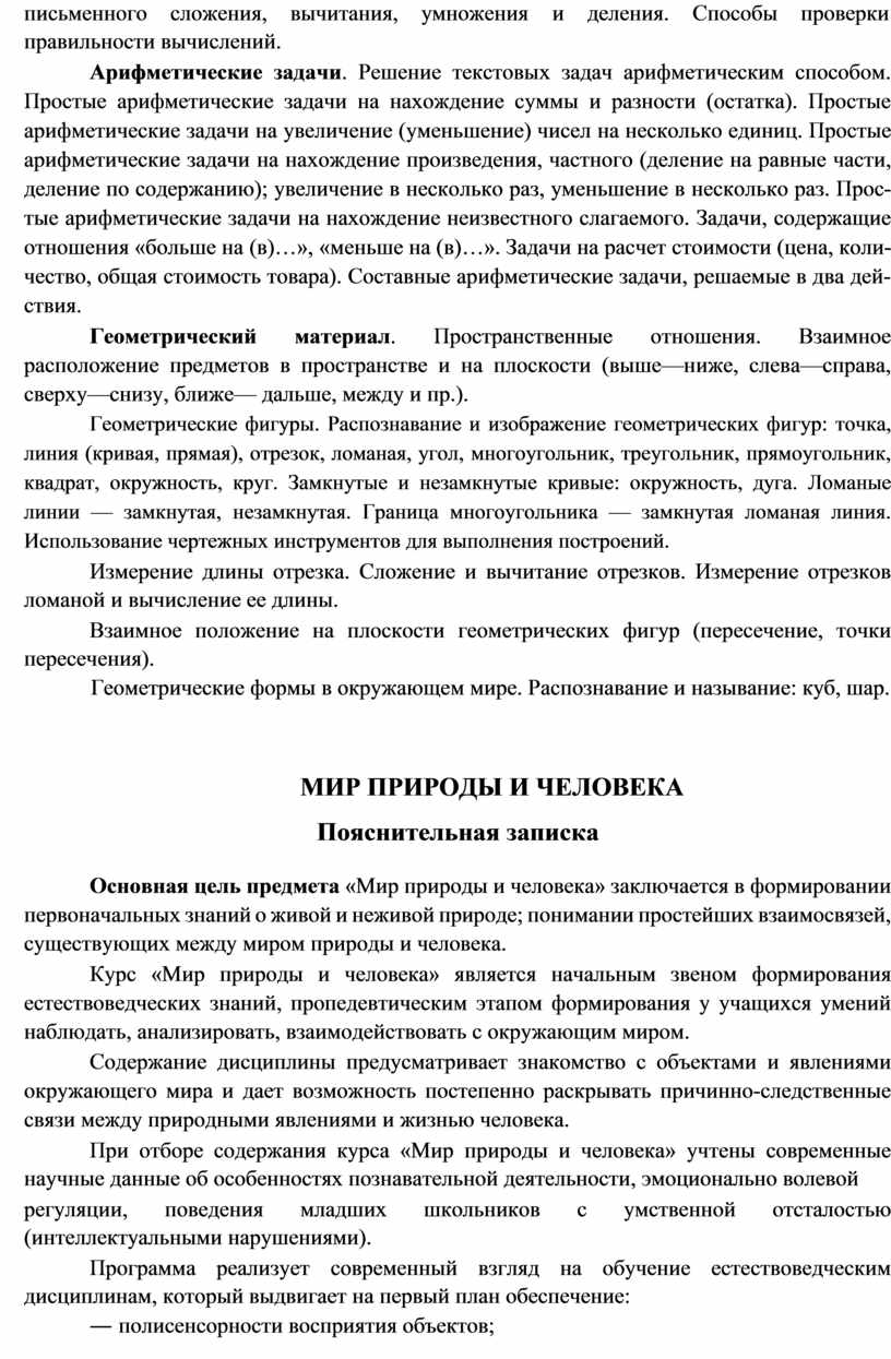 умственной отсталостью (интеллектуальными нарушениями) и включает следующие программы, ориентированные на достижение личностных и предметных результатов: