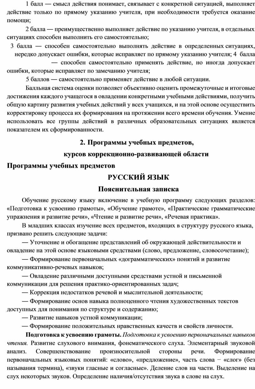 2.2. Программы учебных предметов, курсов коррекционно-развивающей области. |