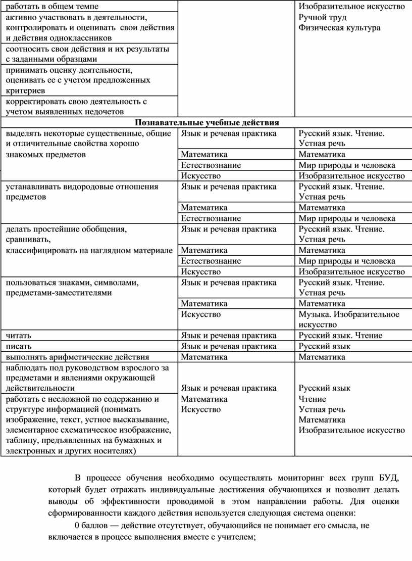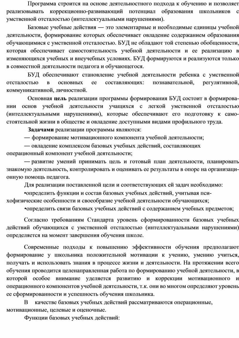 программу формирования базовых учебных действий;