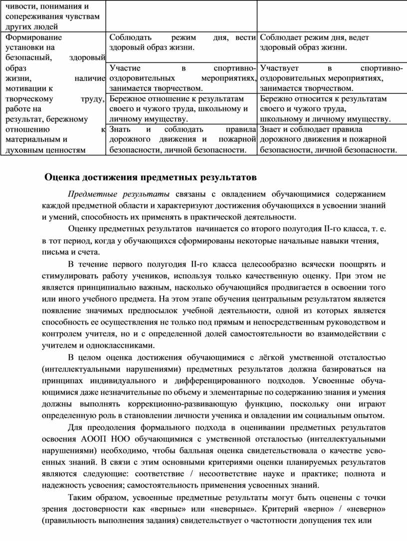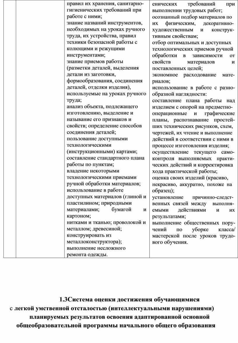 1.3. Система оценки достижения обучающимися с легкой умственной отсталостью |