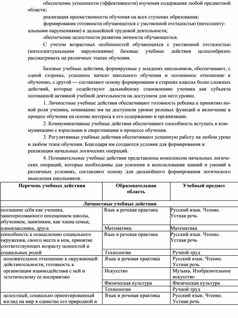 (интеллектуальными нарушениями) учебной деятельностью, обеспечивающей формирование жизненных компетенций;