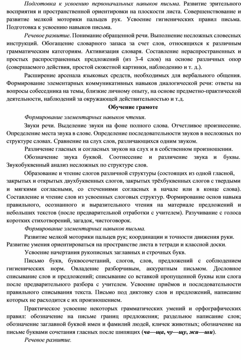 программы начального общего образования обучающихся с легкой умственной |