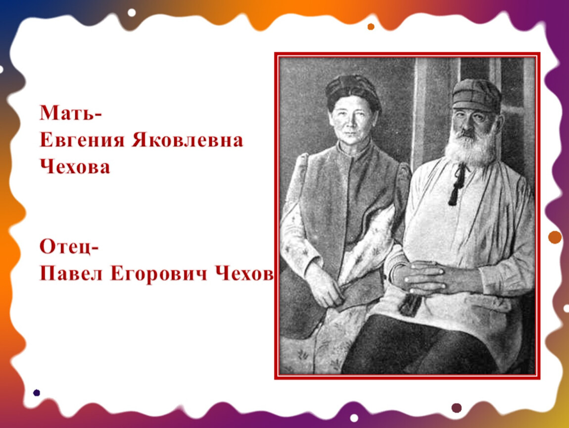 Мать- Евгения Яковлевна Чехова Отец- Павел Егорович Чехов