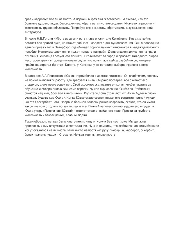 Таким образом, нельзя быть жестокими к людям, кому и без нас плохо. Мы должны