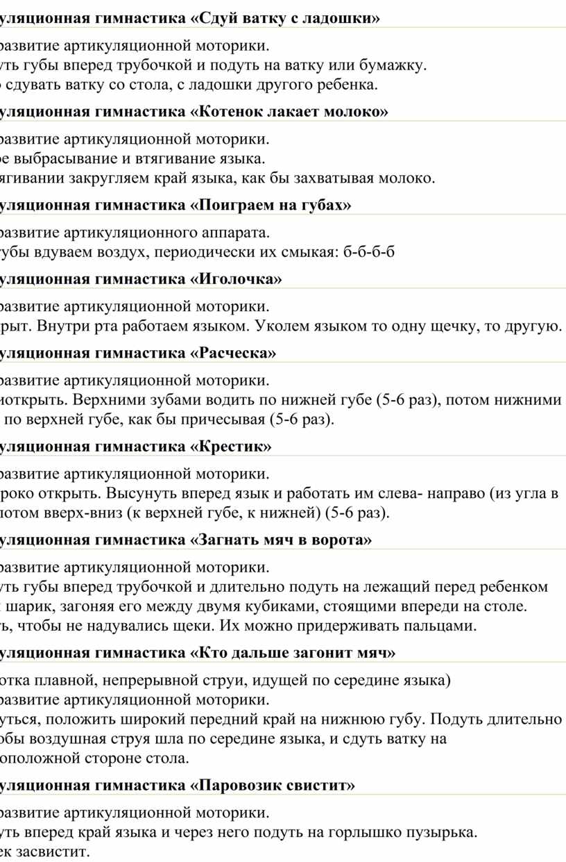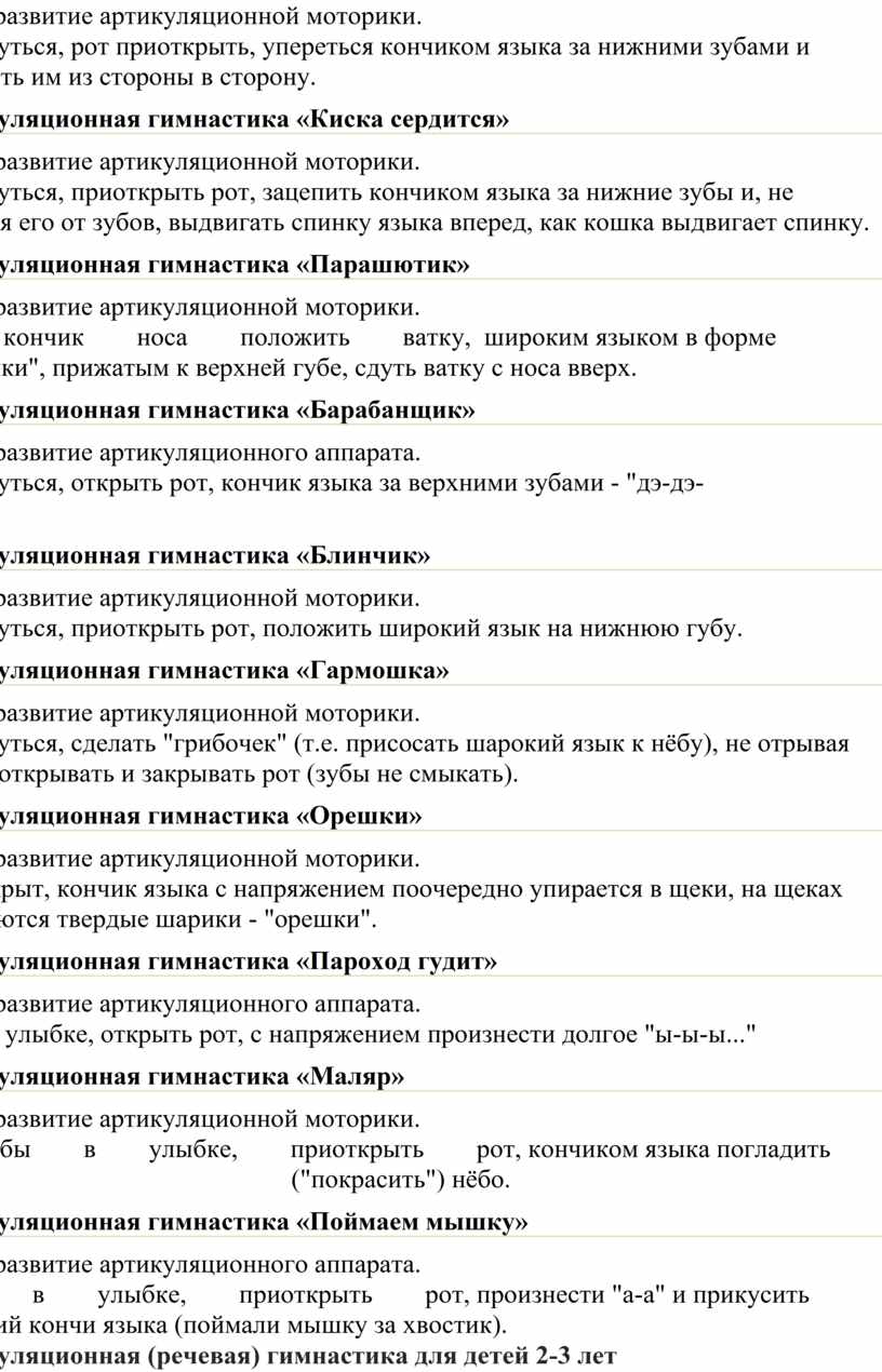Картотека артикуляционной гимнастики для детей 2-3 лет |
