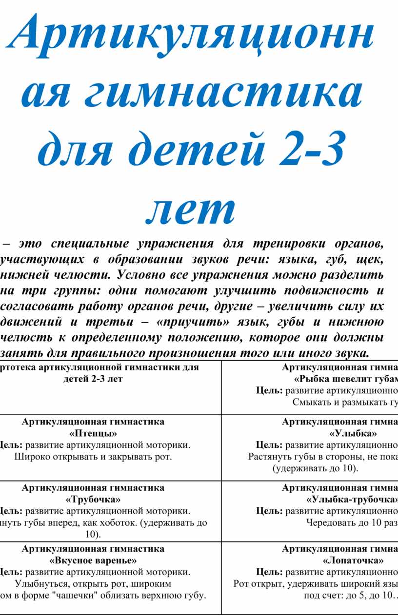 Артикуляционная (речевая) гимнастика для детей 2-3 лет