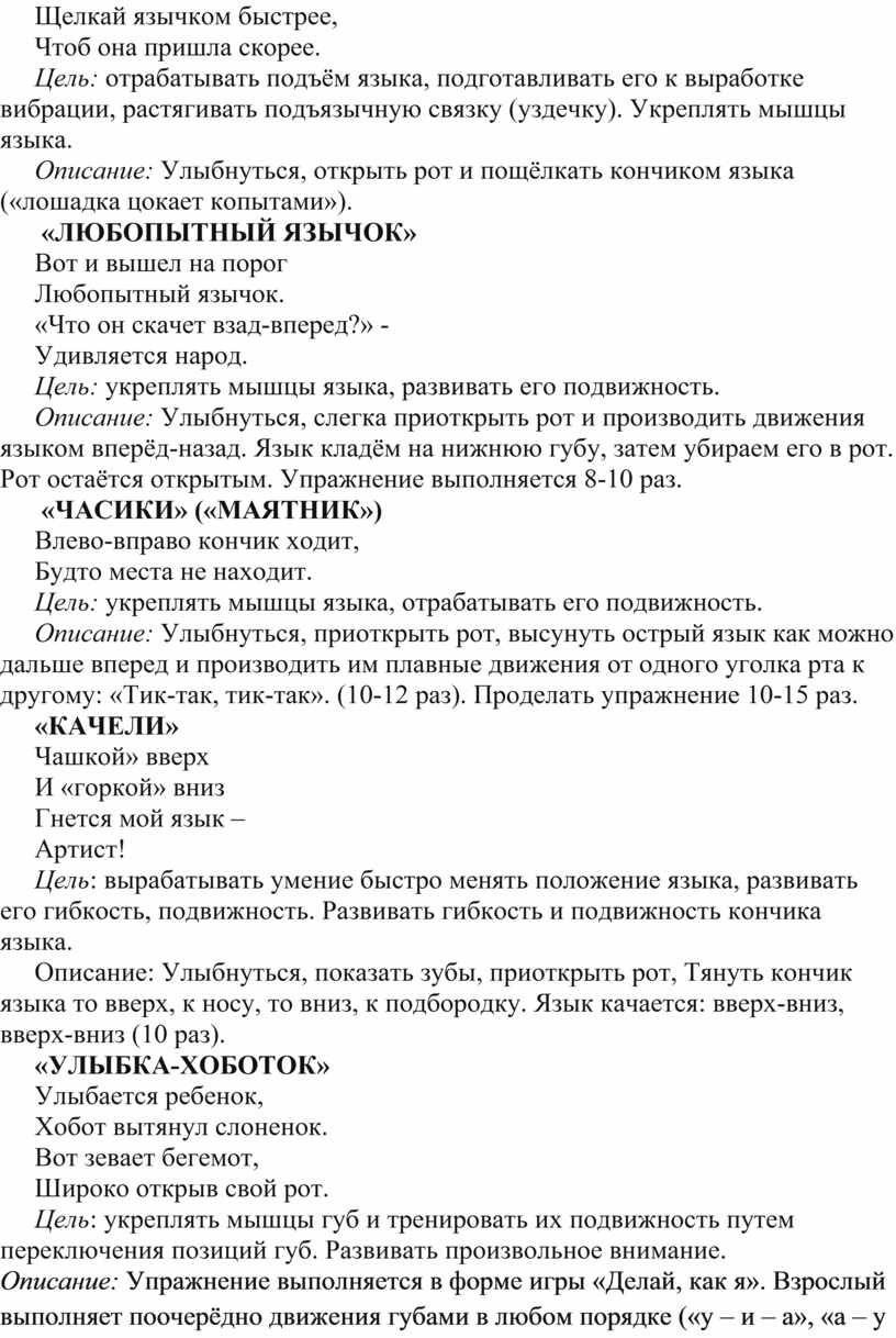 Цель: укреплять мышцы языка, отрабатывать его подвижность.