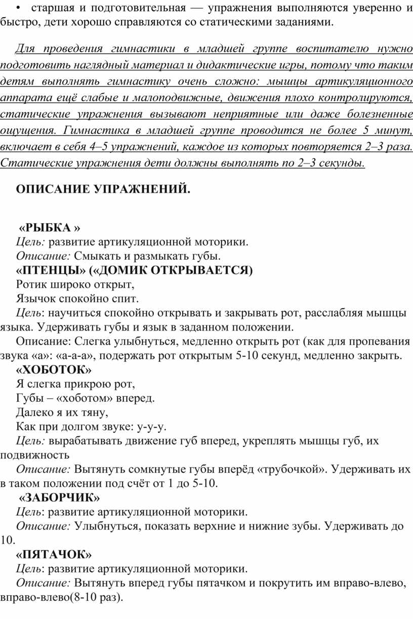 Основная цель воспитателя при проведении артикуляционной гимнастики — выработка качественных движений органов артикуляции и точного, правильного произношения звуков речи.