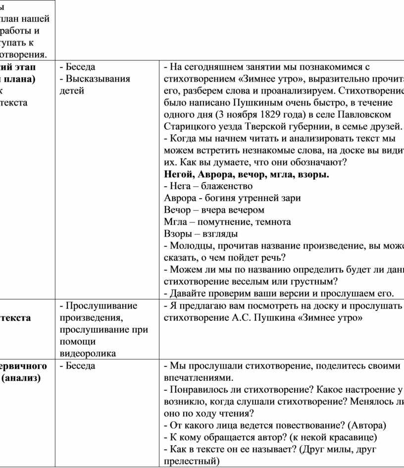 Цель: совершенствовать умения анализировать настроение лирического героя и понимать смысл посредством изучения стихотворения А.С. Пушкина «Зимнее утро»
