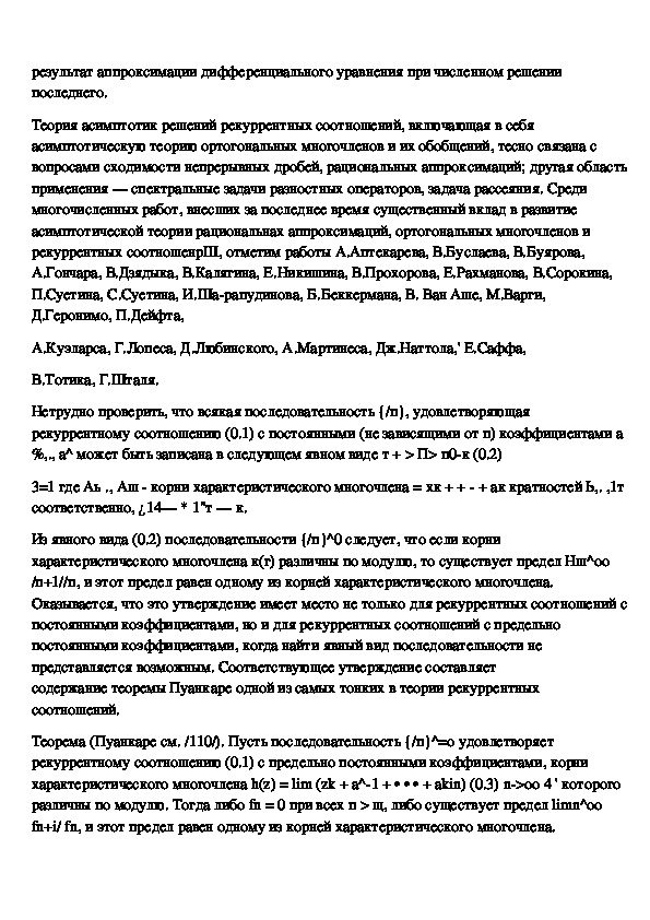 разностных уравнений, особенно в случае, когда разностное уравнение появляется какрезультат аппроксимации дифференциального уравнения при численном решении