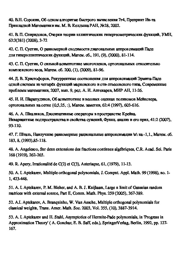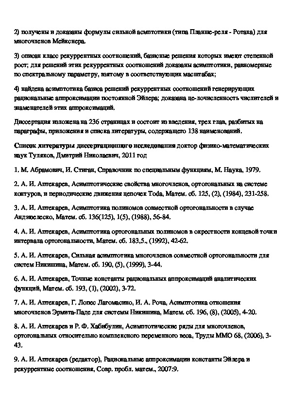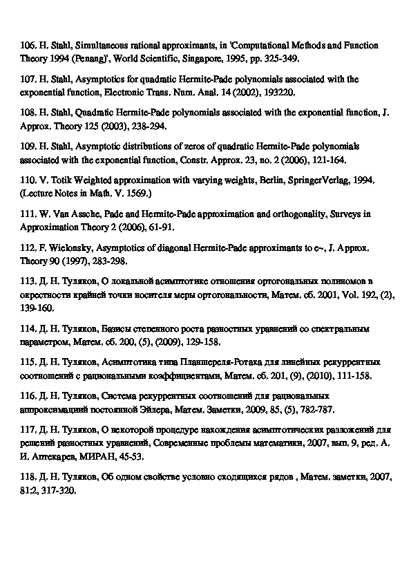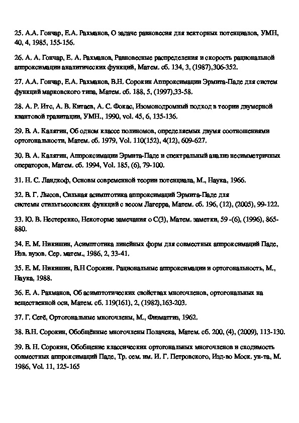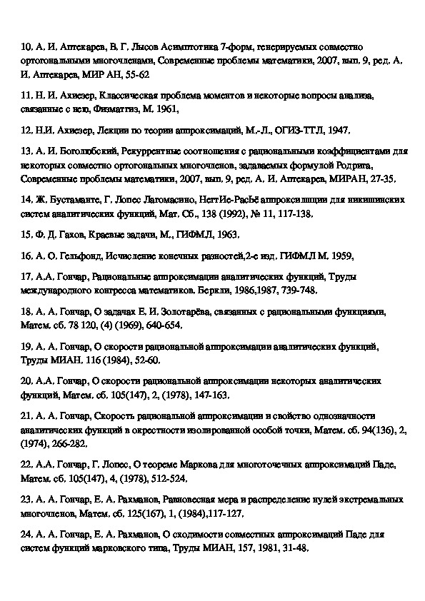 асимптотической теории рациональнах аппроксимаций, ортогональных многочленов и