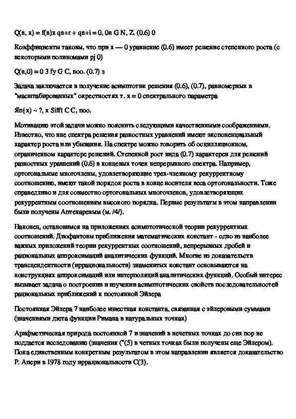 рекуррентных соотношенрШ, отметим работы А.Аптекарева, В.Буслаева, В.Буярова,