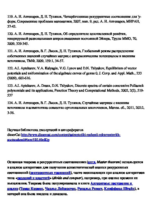 рекуррентных соотношений не потеряло своей актуальности и в наше время.
