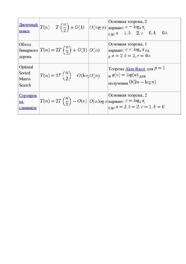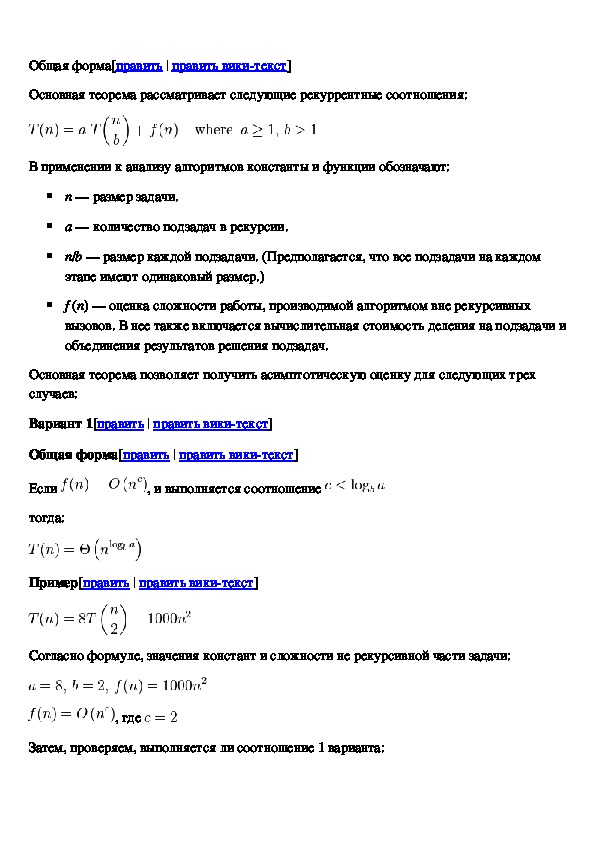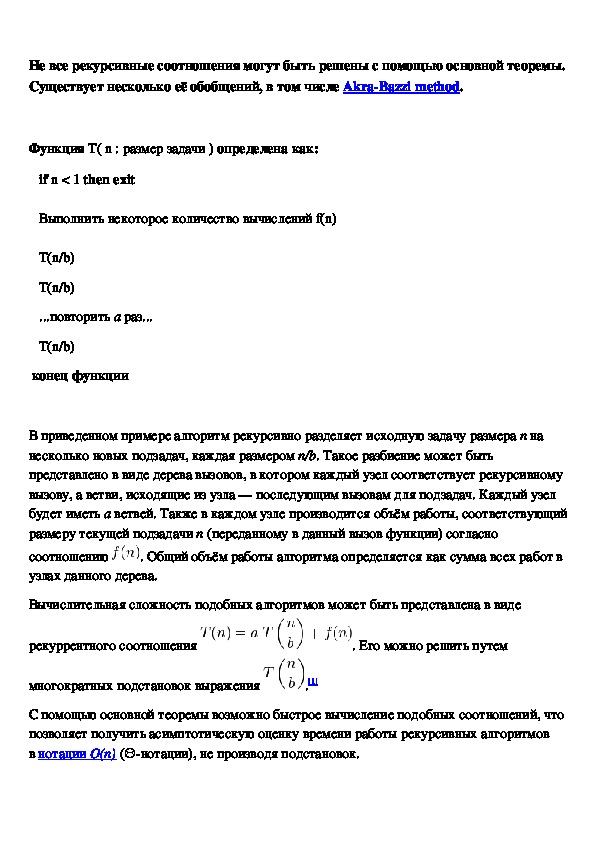 f (n) — оценка сложности работы, производимой алгоритмом вне рекурсивных