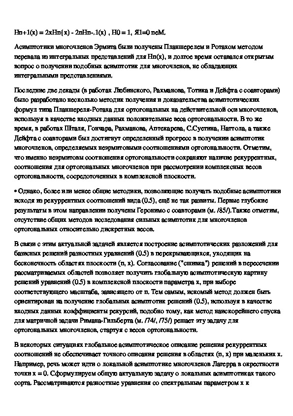 асимптотическую теорию ортогональных многочленов и их обобщений, тесно связана с