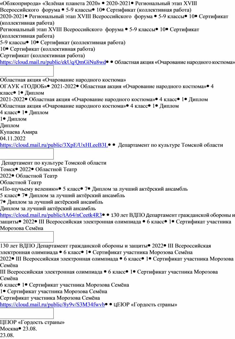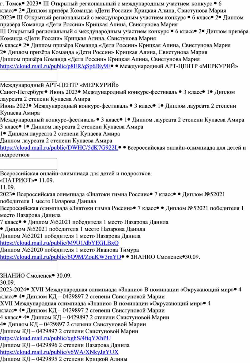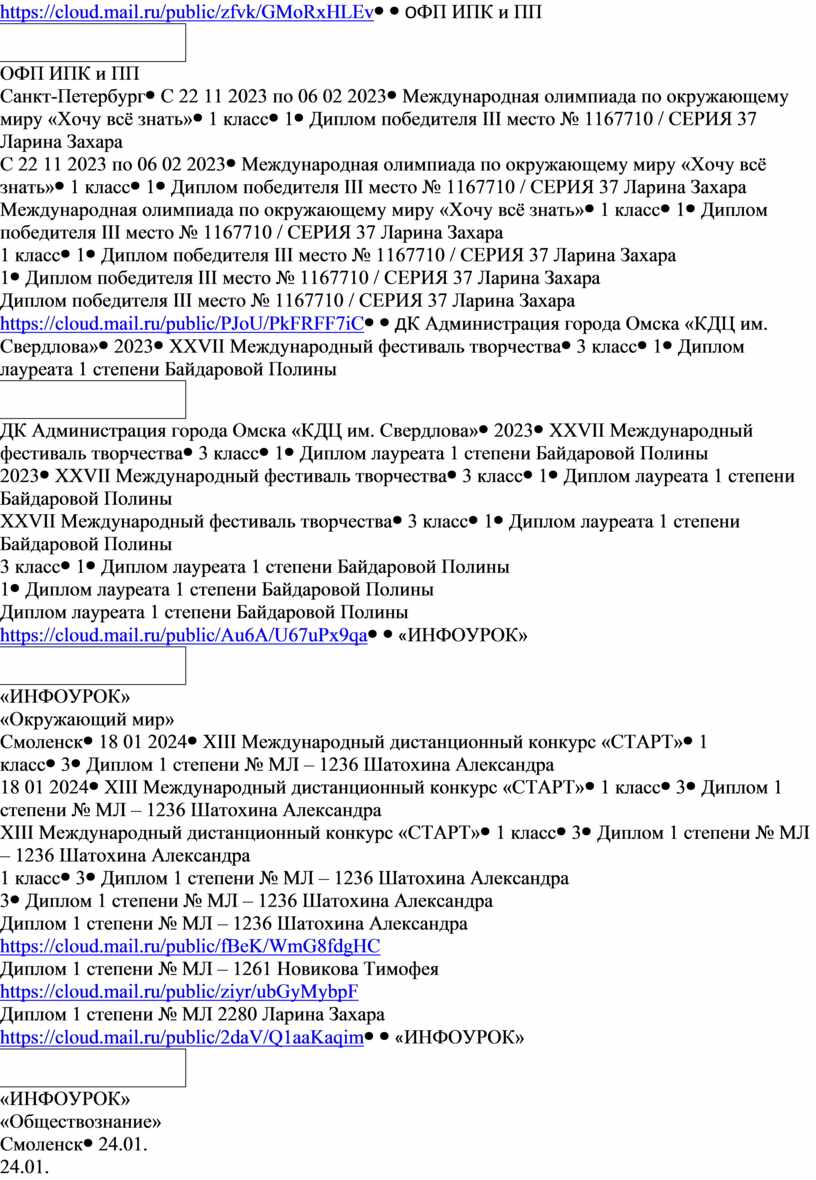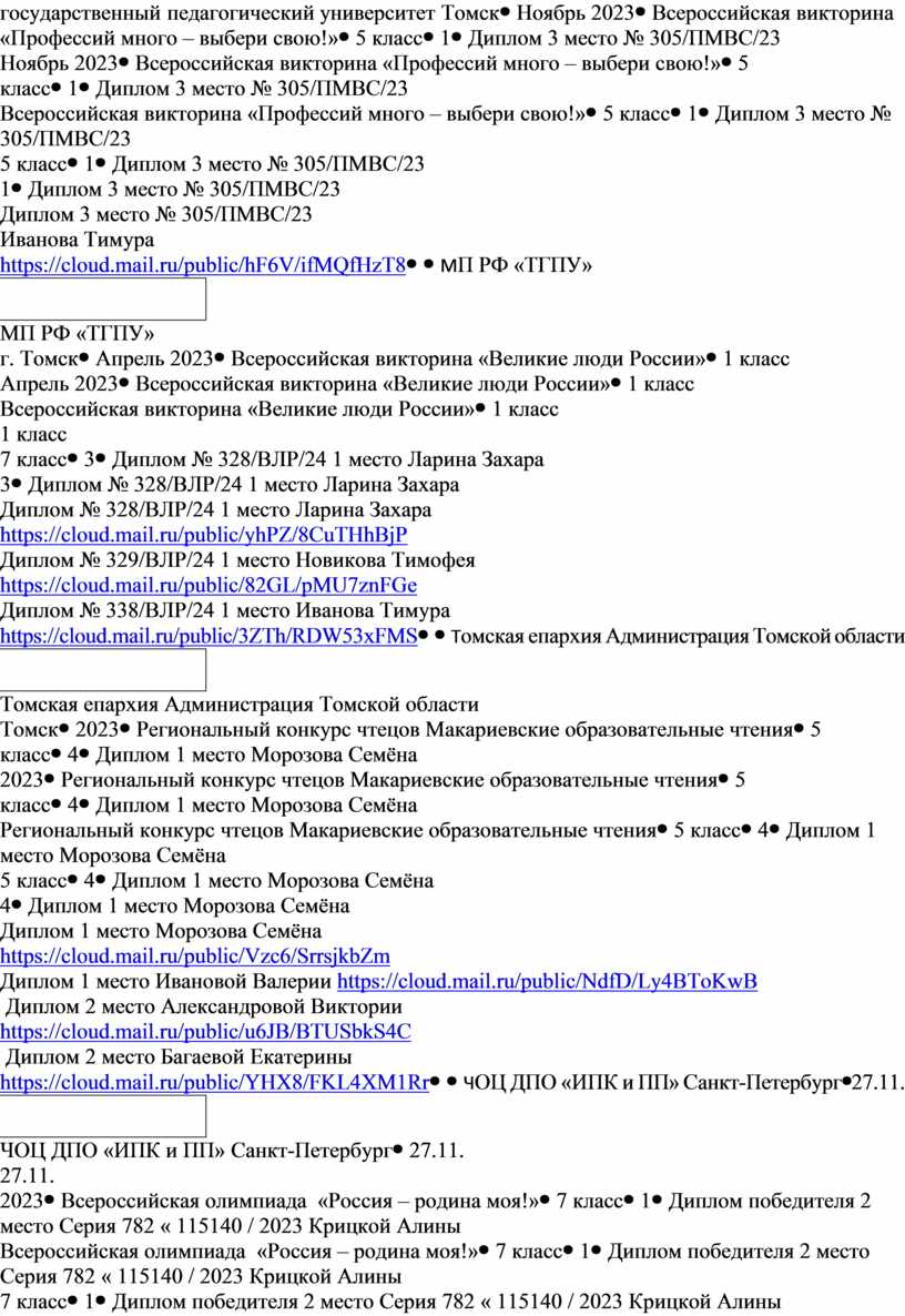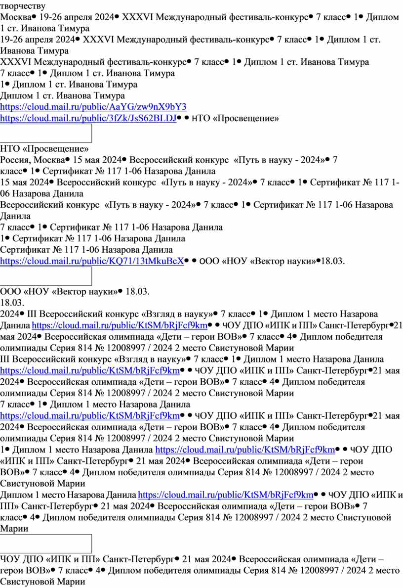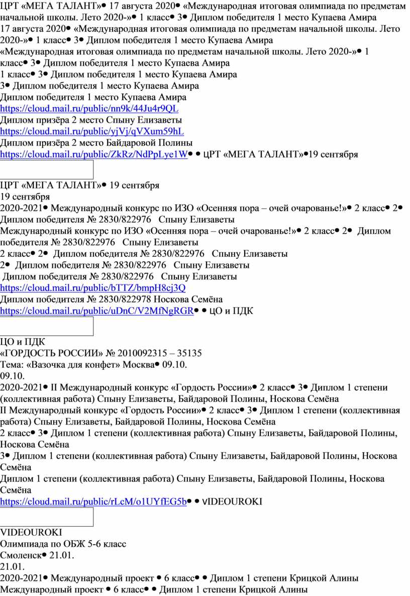 Диплом победителя № 2830/822976 Спыну Елизаветы https://cloud.mail.ru/public/bTTZ/bmpH8cj3Q Диплом победителя № 2830/822978 Носкова Семёна https://cloud.mail.ru/public/uDnC/V2MfNgRGR |