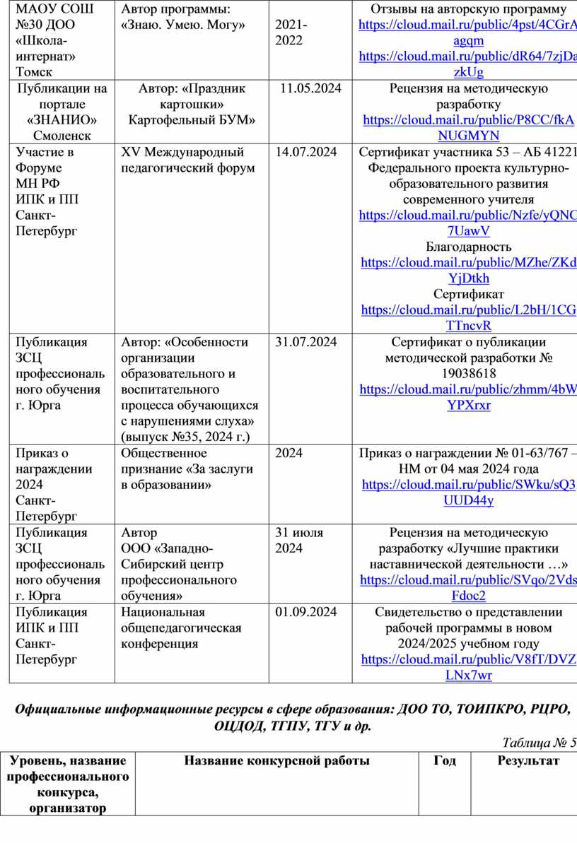 Конкурс образовательных интернет-ресурсов «Лучший персональный сайт педагога - 2024» https://cloud.mail.ru/public/jrU9/RmoXHC12b |