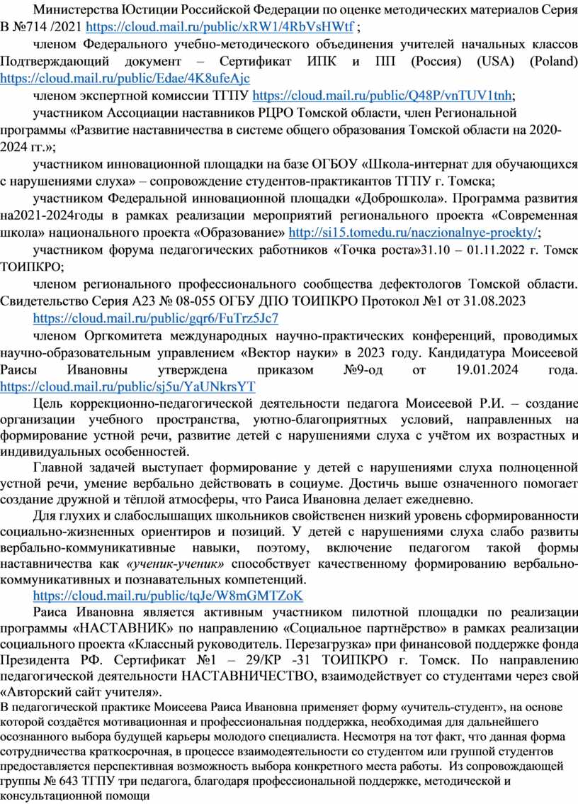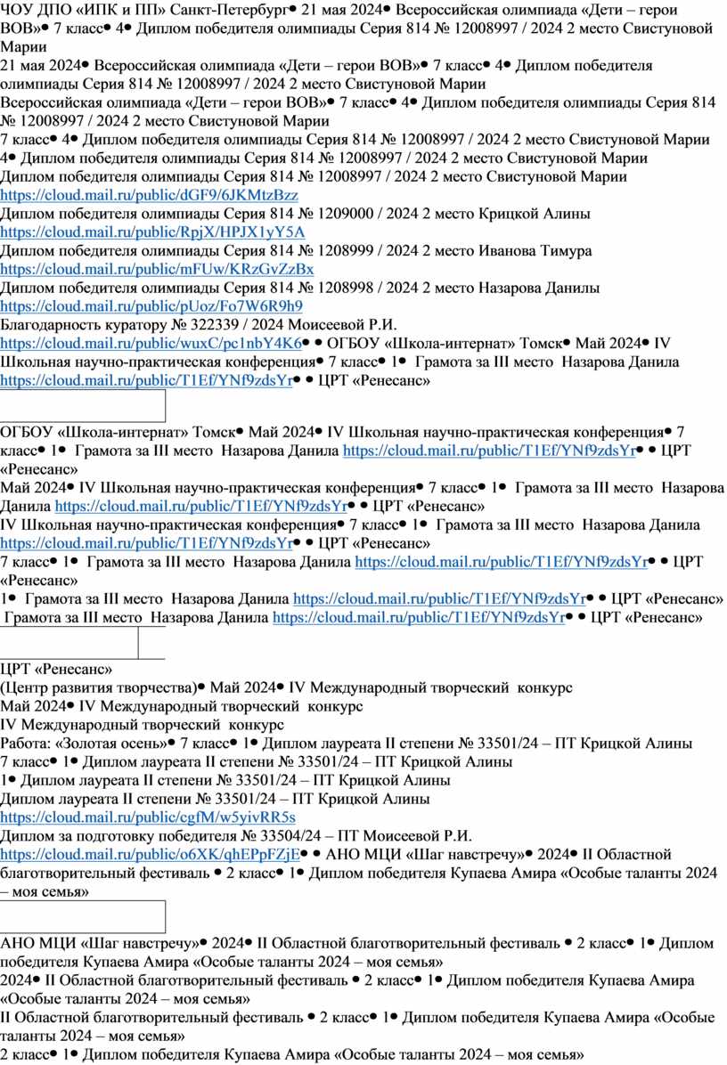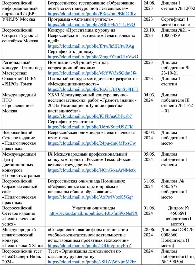 Конкурс образовательных интернет-ресурсов «Лучший персональный сайт педагога - 2024» https://cloud.mail.ru/public/jrU9/RmoXHC12b |